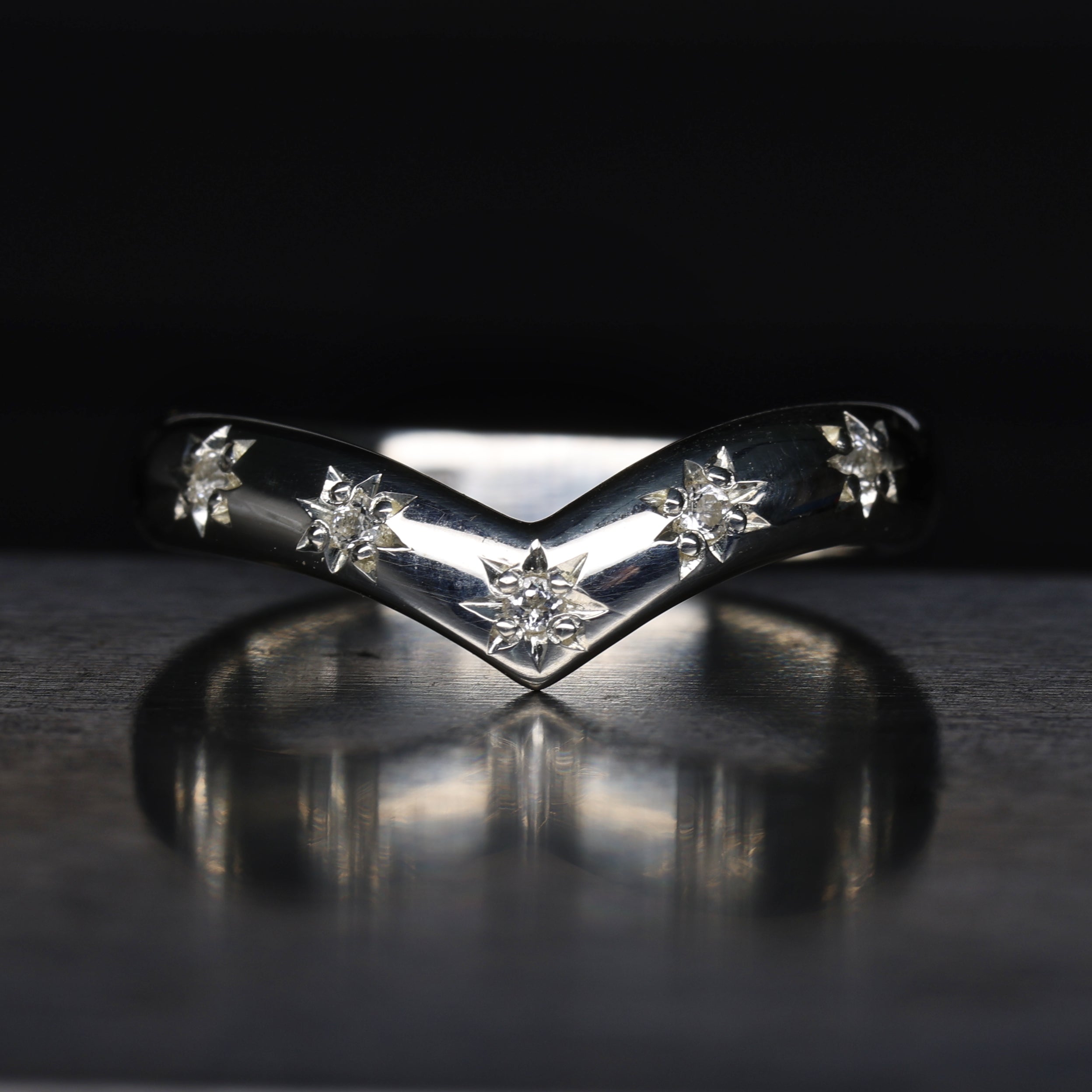 Designed to pair effortlessly with our gothic engagement rings, many of our bands—including the elegant wishbone wedding ring—are shaped to fit most engagement rings. For an exact match, you can visit our Birmingham workshop for a personal fitting.