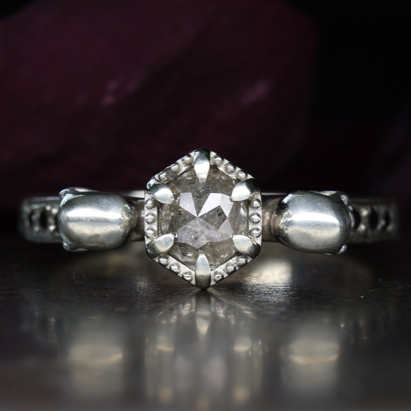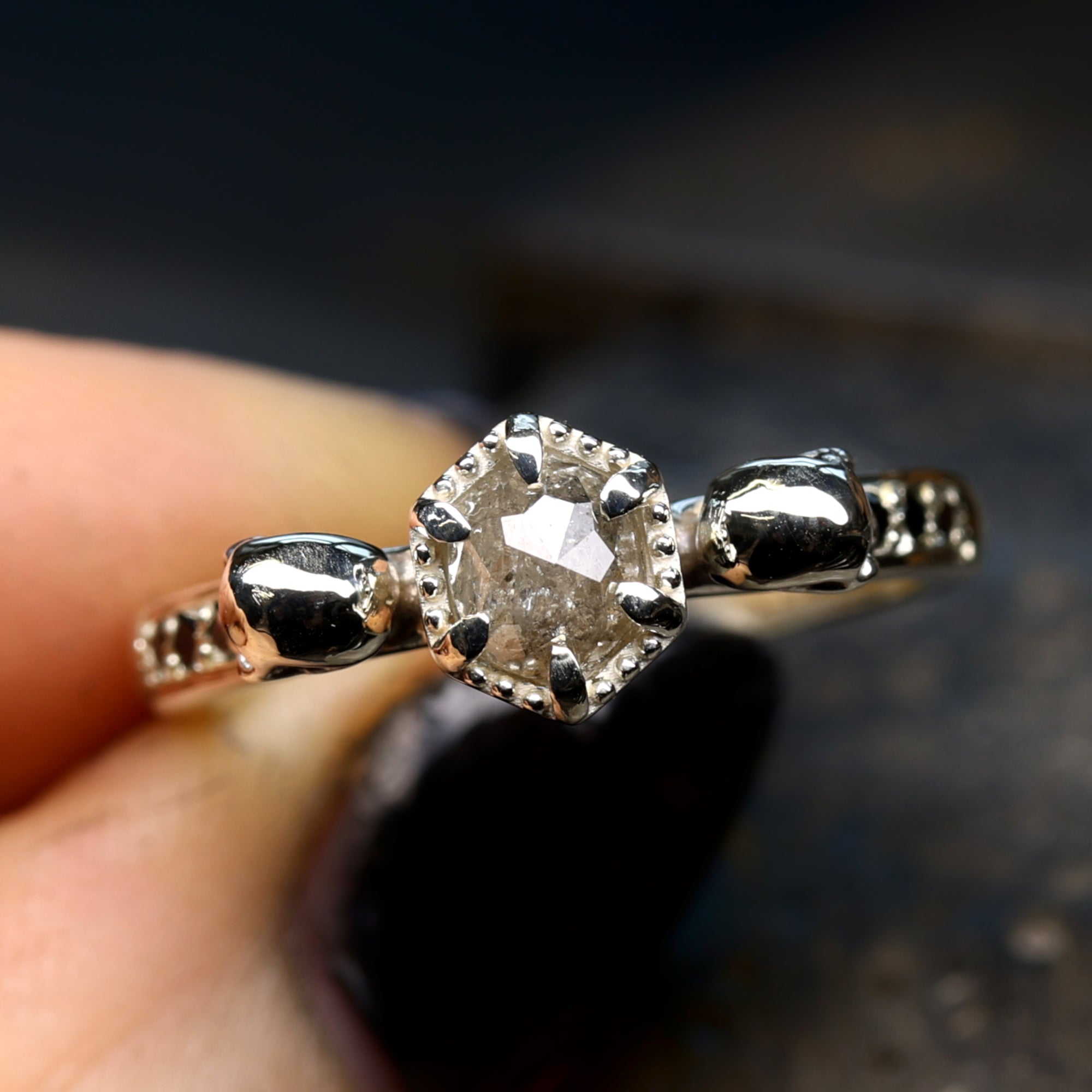Whether you choose white gold for a hauntingly beautiful glow or yellow gold for a rich, vintage-inspired finish, our engagement rings are made for a lifetime of wear and a love that dares to be different. You’ll speak directly with the maker—ensuring that your story, your style, and your symbolism are captured in every detail.